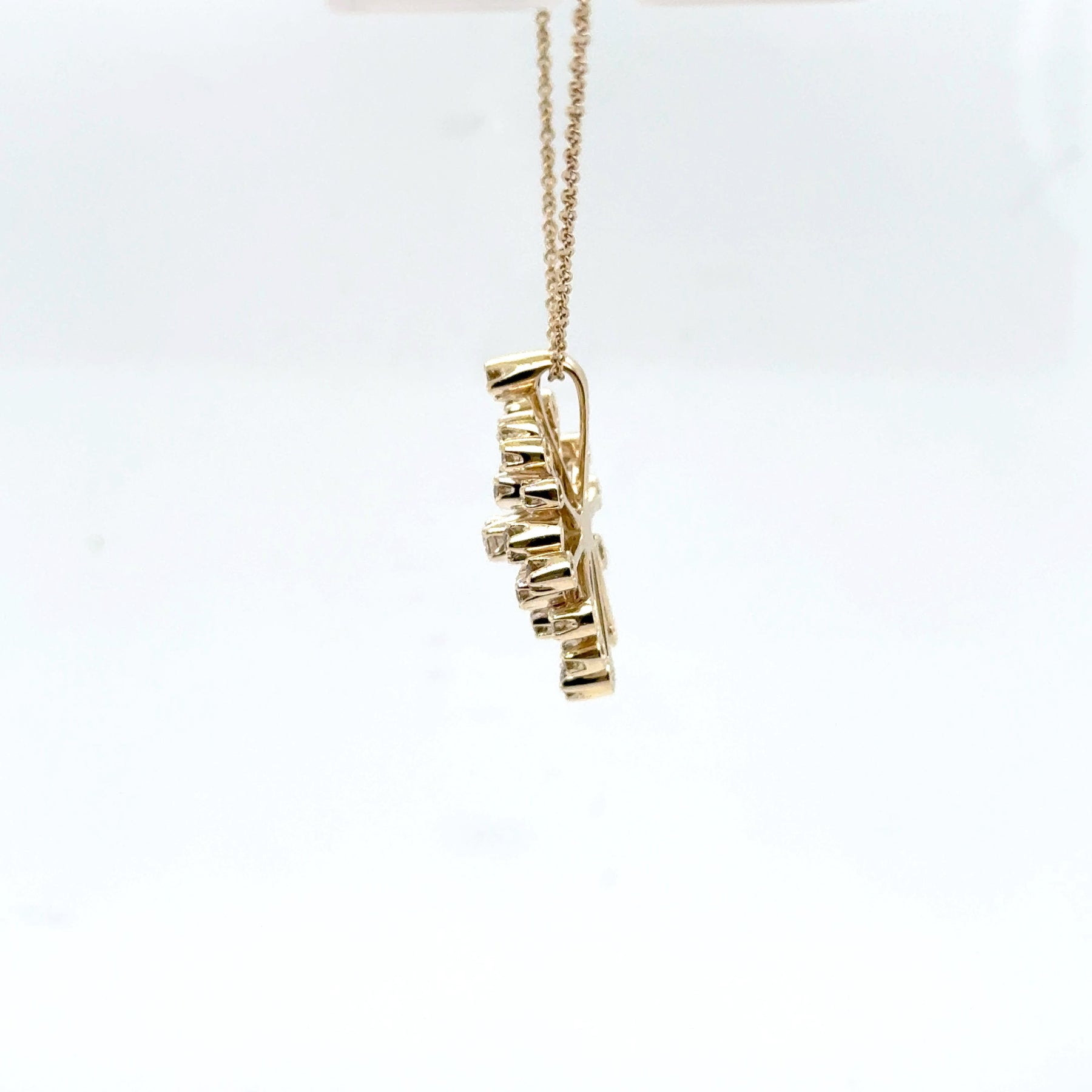 This exquisite H. Stern 18 karat noble gold Snowflake necklace showcases 26 light brown round brilliant-cut diamonds totaling 1.05 carats, each graded VS clarity for exceptional brilliance and refined natural warmth. Inspired by the beauty of winter’s geometry, the pendant displays H. Stern’s signature sculptural craftsmanship, blending organic design with modern luxury. Crafted in the brand’s proprietary noble gold alloy, the piece offers a unique golden hue that enhances the soft sparkle of the diamonds. Measuring 16 inches, the necklace rests elegantly at the collarbone and features a beautifully balanced drop. With a finished weight of 7.8 grams, this Snowflake necklace is both lightweight and luxurious, perfect for collectors of designer jewelry and lovers of distinctive fine-gold artistry.