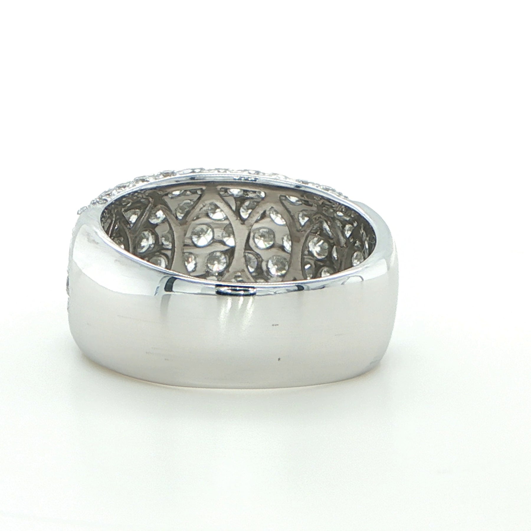Crafted in solid 18-karat white gold, the substantial weight and high-polish finish enhance the ring’s luxurious feel. Whether worn as a statement piece, anniversary band, or signature everyday luxury, this ring embodies timeless sophistication and fine craftsmanship.