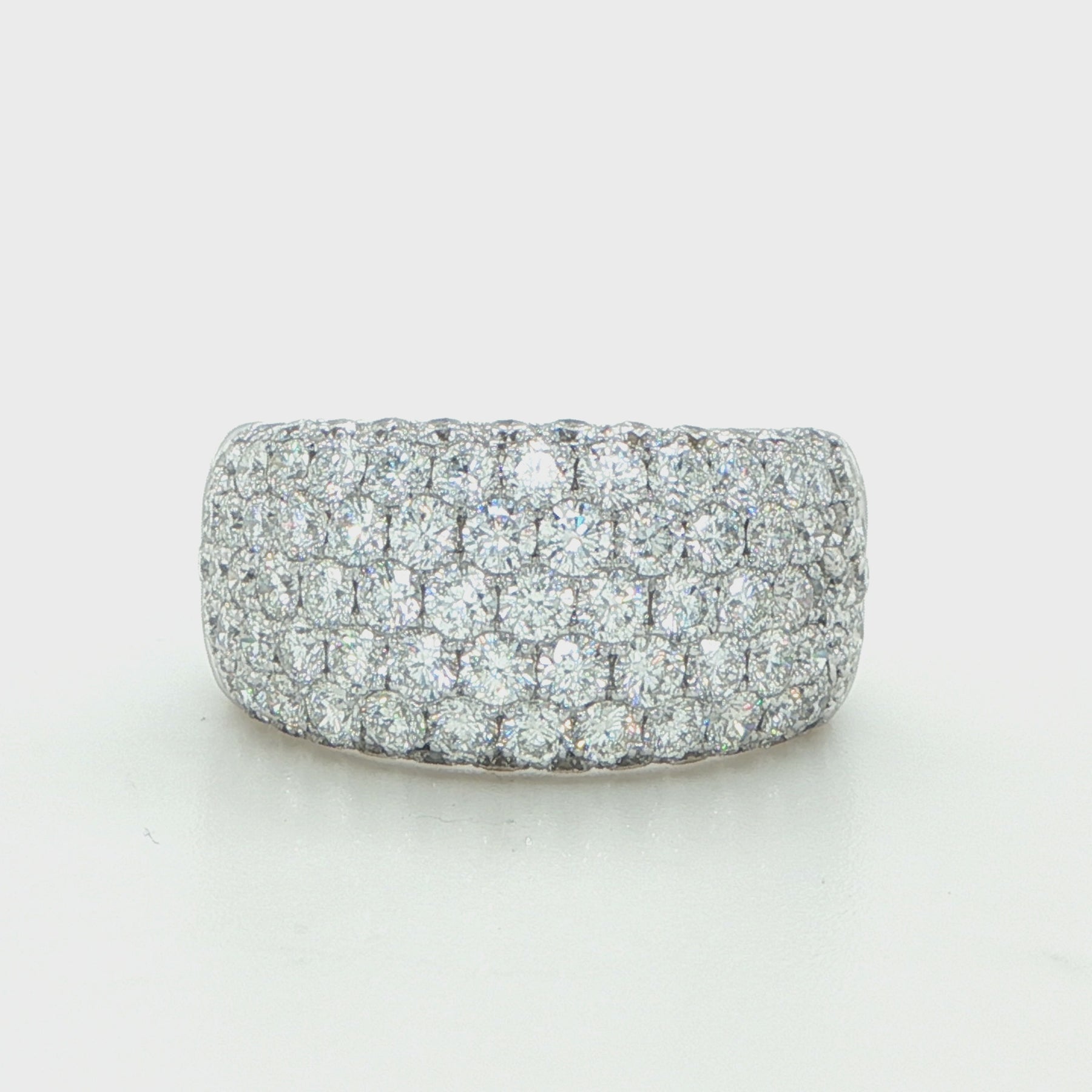 Brilliantly luminous and undeniably luxurious, this 18K white gold pavé diamond ring is designed to make a statement from every angle. Meticulously set with an array of shimmering diamonds, the pavé design creates a continuous surface of light, delivering exceptional sparkle and presence on the hand.