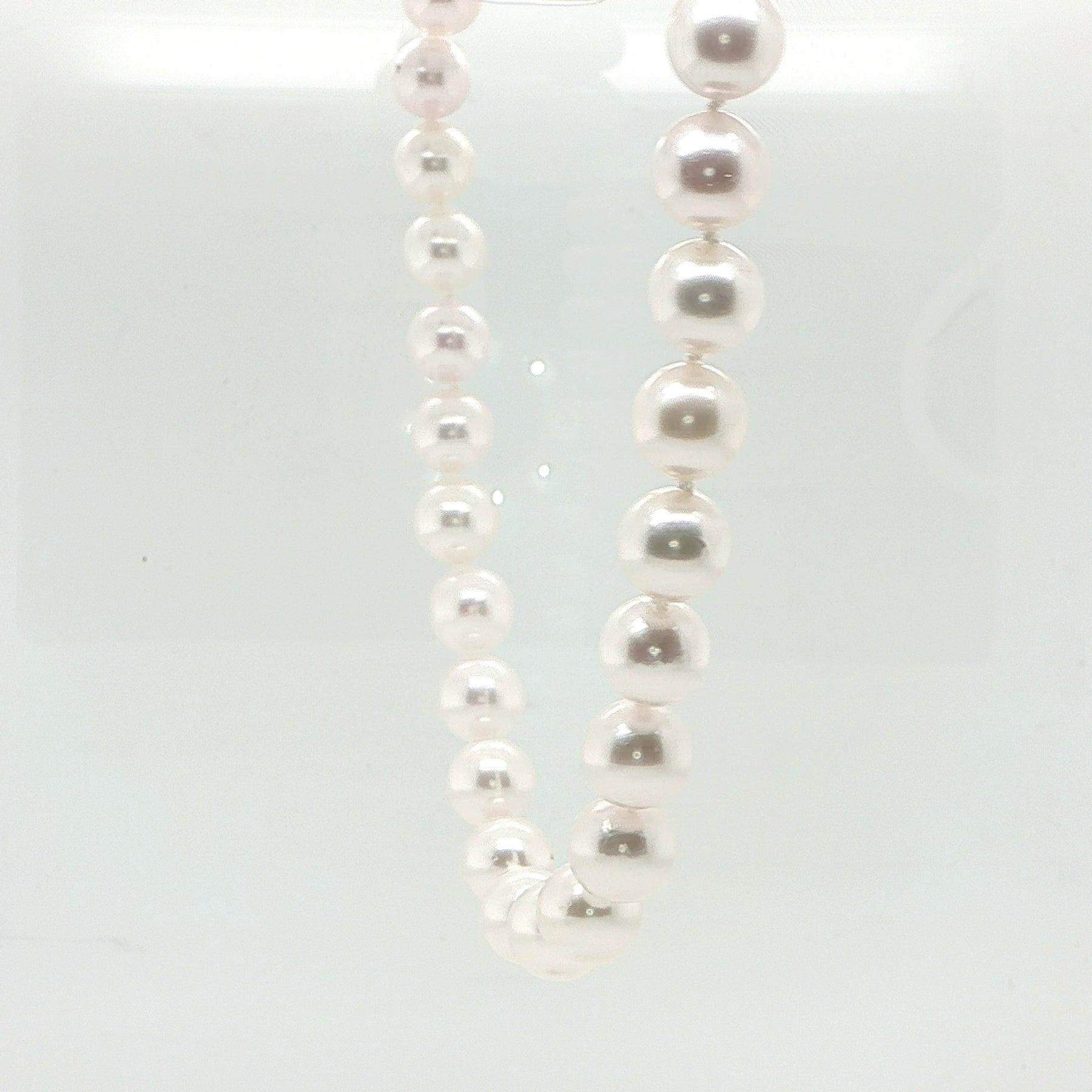 This elegant one-strand pearl necklace is beautifully composed of 50 Japanese Akoya cultured pearls, each measuring approximately 8–8.5mm. Akoya pearls are prized for their exceptional luster, smooth surfaces, and classic appeal, making them a timeless choice for fine pearl jewelry.
