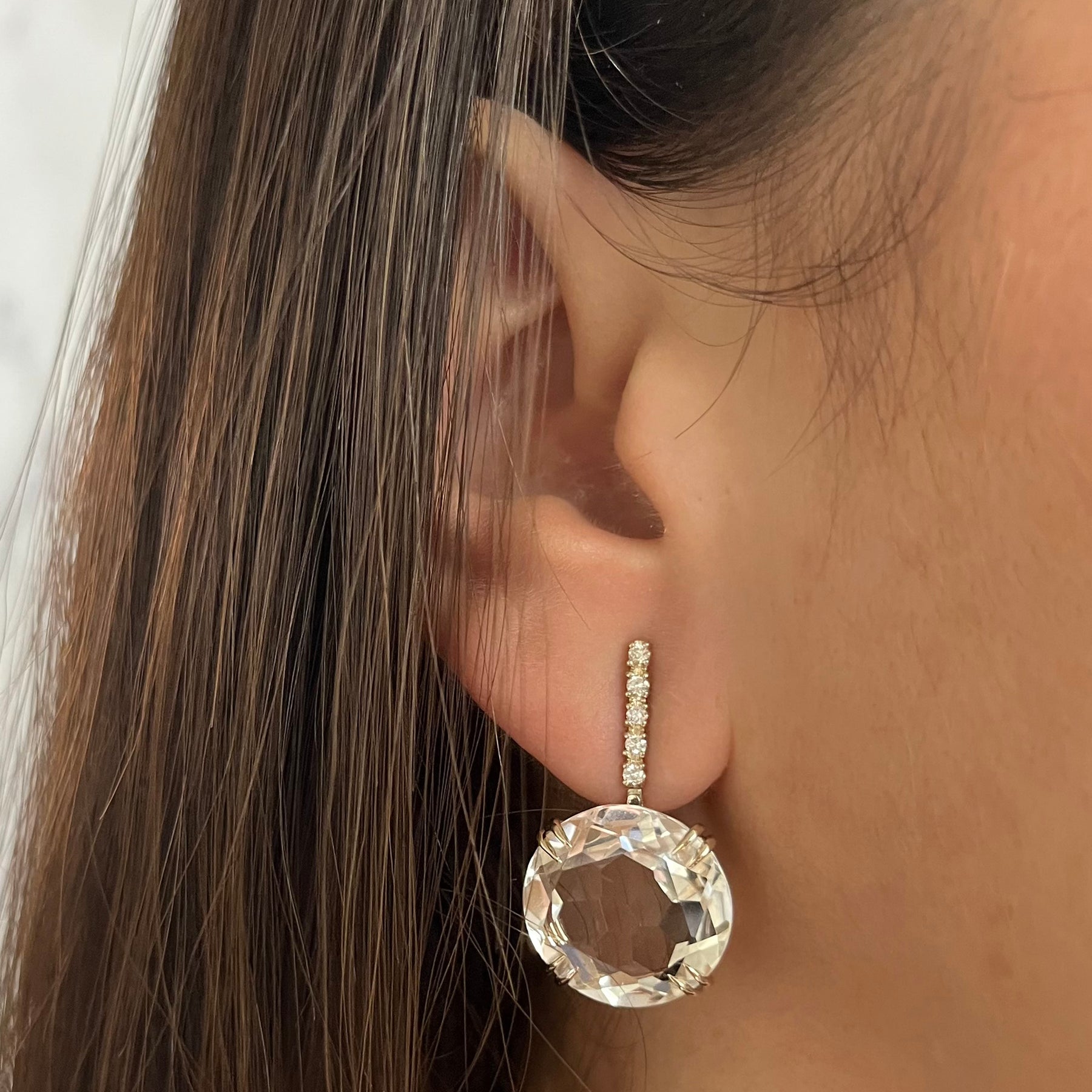 These H. Stern 18 karat noble gold drop earrings featuring 2 Cobblestone quartz accented by 10 round cut diamonds with VS clarity diamonds and H color diamonds totaling 0.10 carats with pierced post with friction back closure and finished weight of 10.5 grams with MSRP $2,800 showcase prestigious designer drop earrings construction with quartz gemstone design and H. Stern signature. The H. Stern jewelry offers noble gold metal while Cobblestone quartz stones provide distinctive texture for luxury designer jewelry appeal with diamond accent stones and exclusive H. Stern craftsmanship. Designer gemstone earrings offer exceptional investment grade jewelry value with Cobblestone collection styling perfect for fine jewelry collection and designer jewelry enthusiasts seeking H. Stern earrings and contemporary drop styling with premium designer quality.
