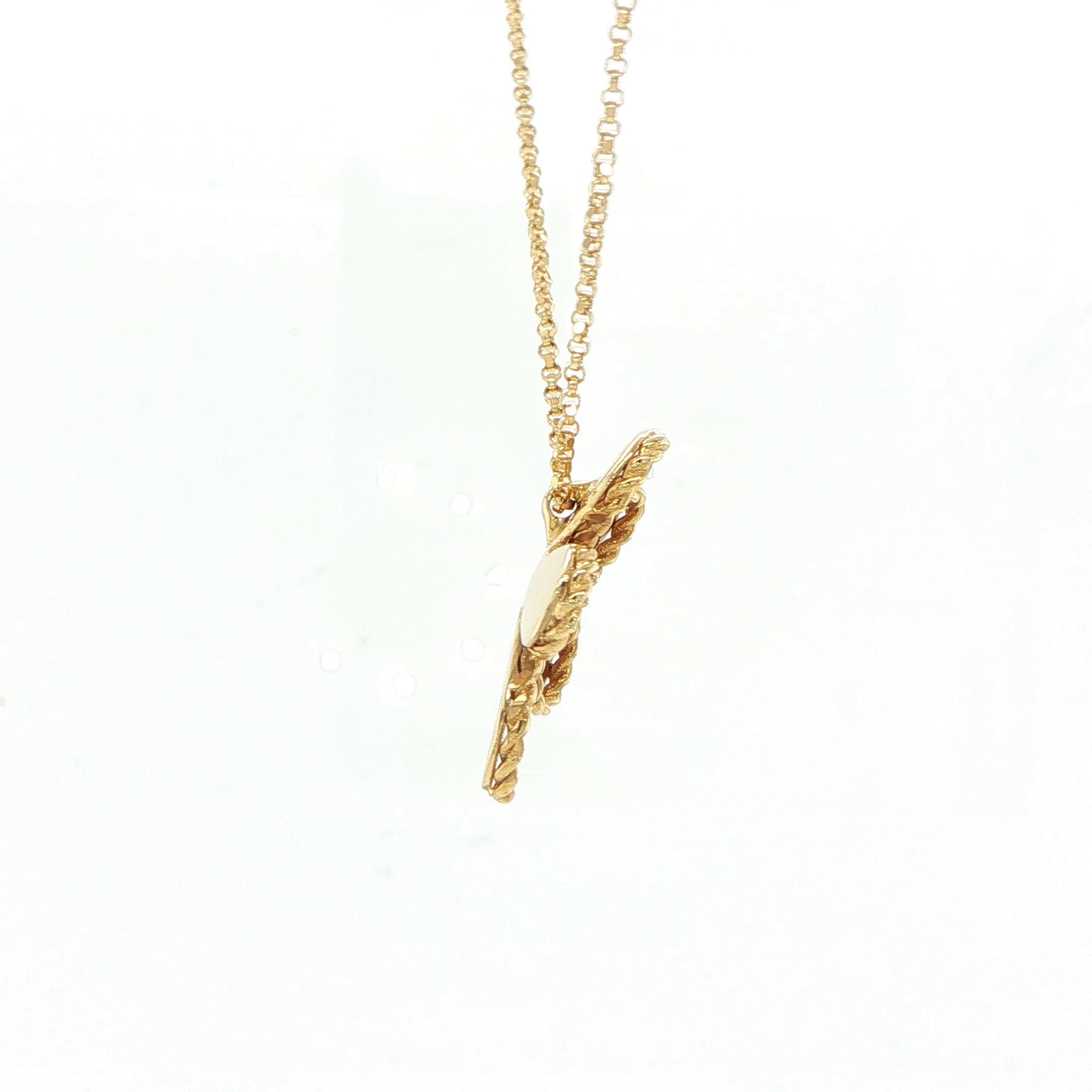This Roberto Coin 18 karat yellow gold 21mm Jasmine flower pendant necklace featuring 0.06 carat total weight round brilliant cut diamonds of SI clarity diamonds and G/H color diamonds with adjustable length 16-18 inches showcases exquisite designer necklace jewelry construction with flower pendant design and Roberto Coin signature. The Roberto Coin jewelry offers Jasmine flower motif while diamond accent stones provide delicate sparkle for luxury designer jewelry appeal with adjustable chain length and Italian craftsmanship. Designer flower pendant offers excellent investment grade jewelry value with Roberto Coin quality perfect for fine jewelry collection and designer jewelry enthusiasts seeking Roberto Coin necklaces and floral pendant styling with authentic designer craftsmanship.