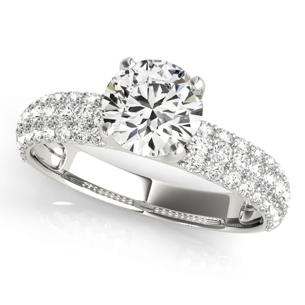 Pave settings are on the rise in popularity. The Pave setting contains inlaid .05 to .2c stones either partially or entirely along the band of the ring itself. Pairing the metal type of your band with a magnificent collection of stones really completes a ring and helps it sparkle from all angles!