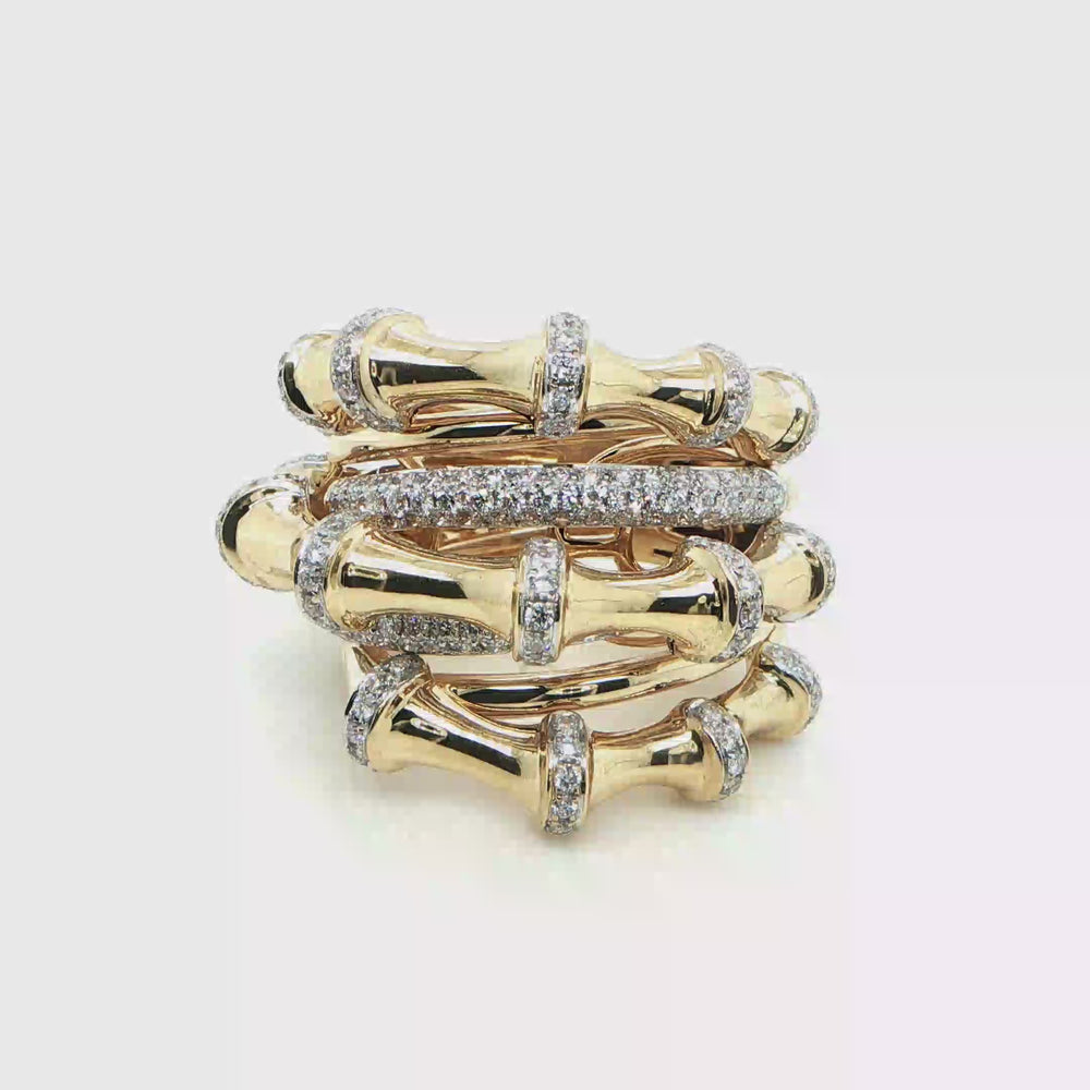 18K Yellow Gold Bamboo Diamond Stack Ring