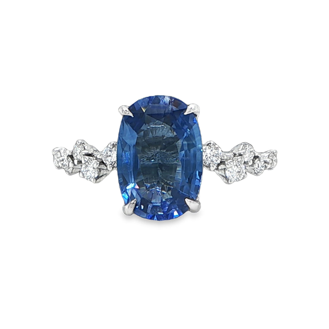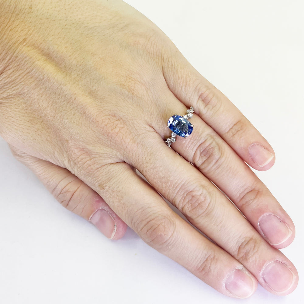 Platinum Oval Sapphire Hidden Halo Ring