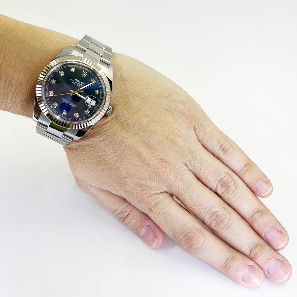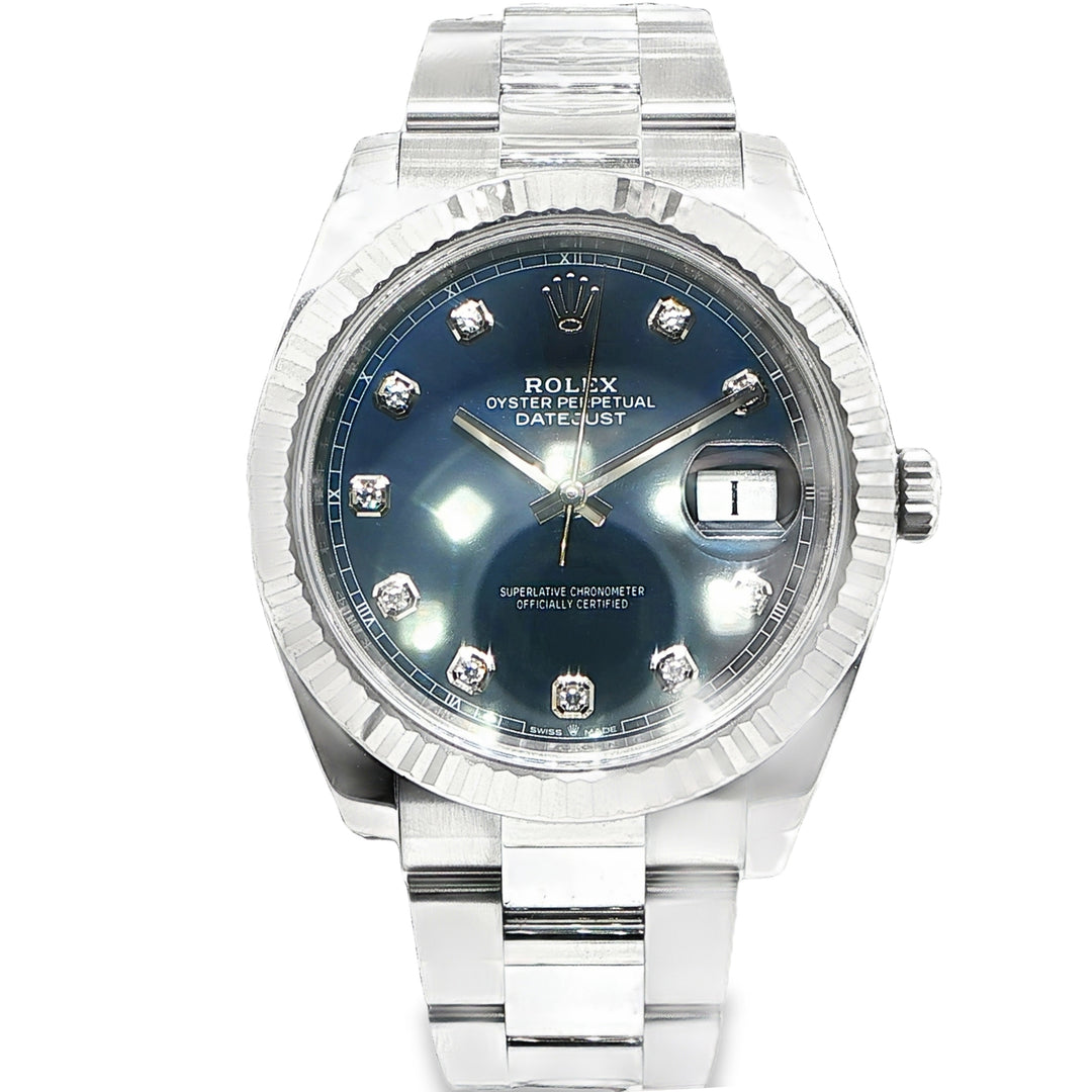 Rolex Datejust 41mm Steel & White Gold Blue Diamond Dial