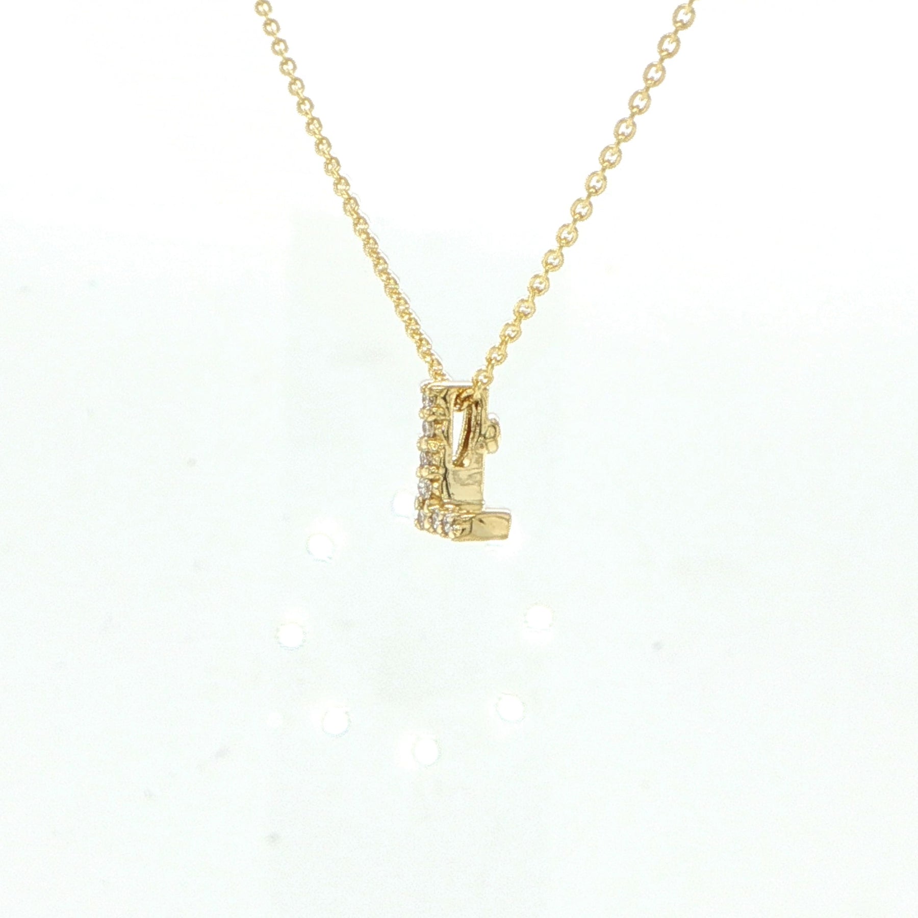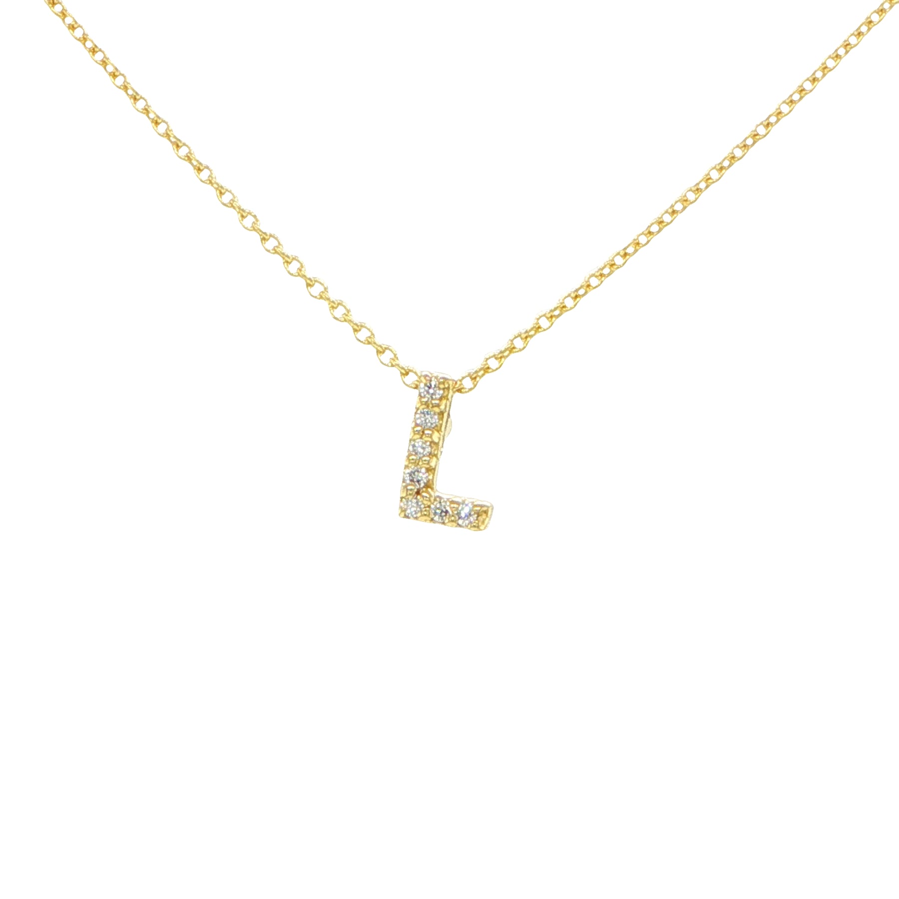 This Roberto Coin 18 karat yellow gold L initial necklace featuring 0.03 carat total weight diamonds with adjustable 16-18 inch length and style #001634AYCHXL showcases personalized designer necklace jewelry construction with letter L pendant and Roberto Coin quality. The initial pendant necklace offers diamond accent letter while personalized jewelry styling provides elegant customization for luxury designer jewelry appeal with adjustable chain length and Italian craftsmanship. Designer initial necklace offers excellent investment grade jewelry value with Roberto Coin authenticity perfect for fine jewelry collection and designer jewelry enthusiasts seeking personalized letter necklaces and initial pendant styling with signature Roberto Coin.