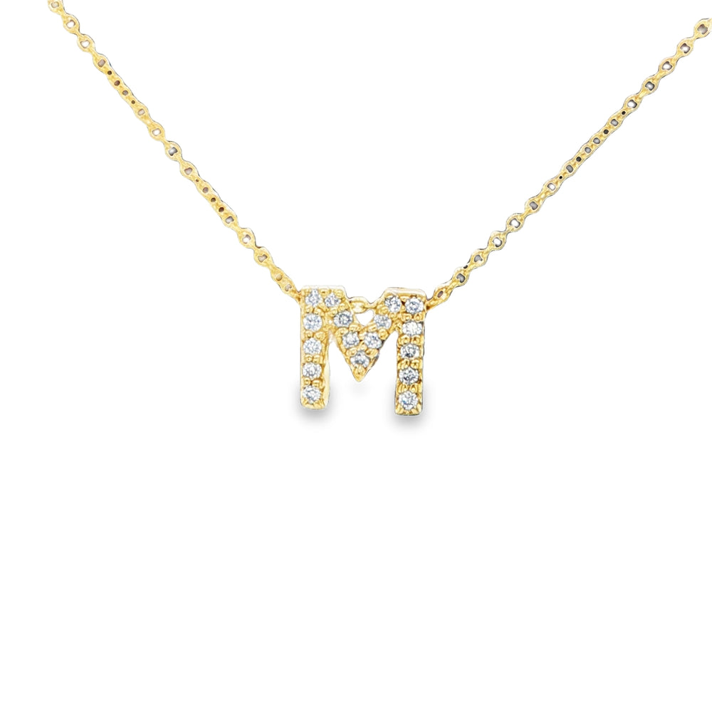 This Roberto Coin 18 karat gold Love Letter Initial "M" pendant necklace with diamonds totaling 0.08 carats on adjustable 16-18 inch chain with lobster clasp and style 001634AWCHXM showcases personalized designer necklace jewelry construction with initial pendant design and Roberto Coin quality. The Love Letter necklace offers monogram pendant styling while diamond accent stones provide elegant sparkle for luxury designer jewelry appeal with adjustable chain length and Italian craftsmanship. Designer initial pendant offers excellent investment grade jewelry value with Roberto Coin authenticity perfect for fine jewelry collection and designer jewelry enthusiasts seeking personalized necklaces and initial letter jewelry with signature Roberto Coin craftsmanship. Available in both 18K white gold and 18K yellow gold - select your preferred metal option.